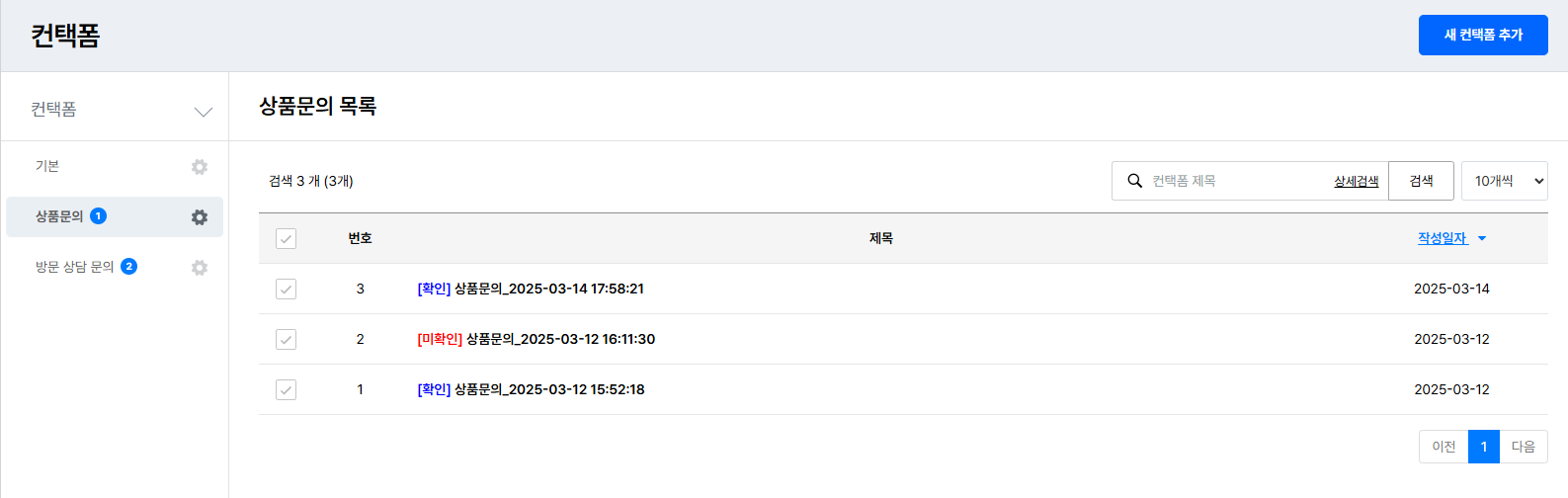 기존의 컨택폼은 사이트당 1개씩만 설정할 수 있고 문의내역은 메일로만 확인할 수 있어 다양하게 활용하기에 제한이 있었지만,
