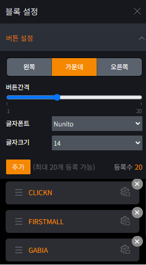 ※ 버튼이 존재하는 블록에서만 추가하실 수 있으며, 최소 1개의 버튼은 존재해야 합니다.