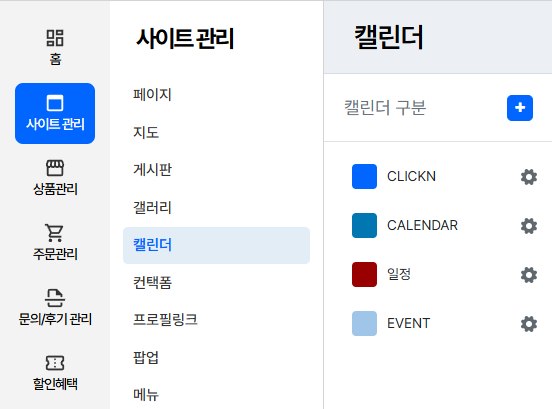 사이트 관리 > 캘린더 메뉴에서 일정을 등록하고 디자인 모드에서 캘린더 블록을 추가해 보세요!